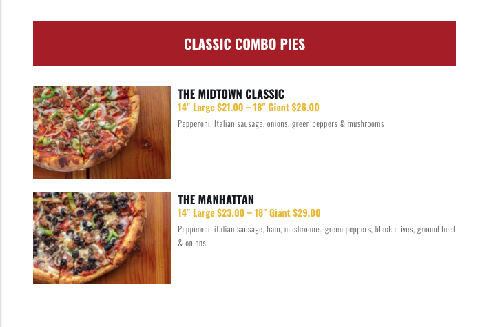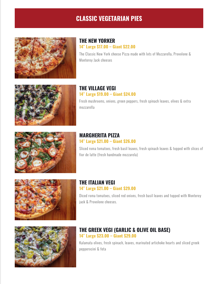 For a more hearty option, take a dive into the Manhattan Pizza, which flaunts a robust mix of pepperoni, Italian sausage, mushrooms, and vibrant veggies. Meanwhile, adventurous appetites can feast on the Brooklyn Pizza with its unique flavors of pepperoni, Linquisa, and cherry peppers—a mouthwatering choice that’s anything but ordinary. Each pizza is a beautiful symphony of colors and flavors, freshly made to ensure every bite is a delight.